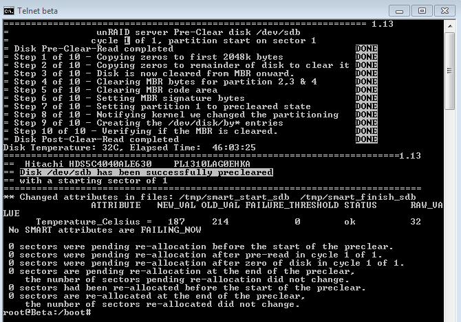| Successful preclear of 4 TB Hitachi hard drive |